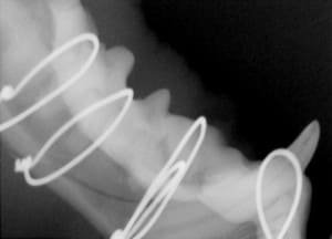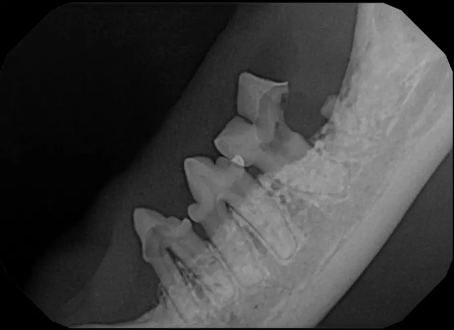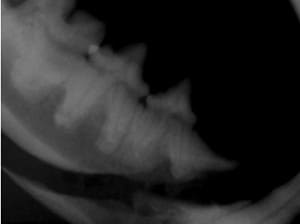 Periodontal disease is extremely common in dogs and cats. Over 80% of dogs and cats over two years of age have some degree of periodontal disease. Periodontal disease is best prevented by yearly professional dental cleanings starting at two years of age and at home brushing at least three times weekly. Brushing should begin at a very early age to allow your new pet to get used to regular brushing. In severe cases of infection or periodontal disease, the teeth may need to be surgically extracted. Extractions should always involve x-rays of the tooth first, as many teeth have multiple roots or may be diseased below where the eye can see. Extracting larger teeth in animals requires oral surgery, equivalent to removing wisdom teeth in people. It is vital that all of the tooth and roots be removed for the periodontal infection to resolve. In cases of important teeth with mild to moderate periodontal disease, multiple periodontal treatments can be offered to help save these teeth.